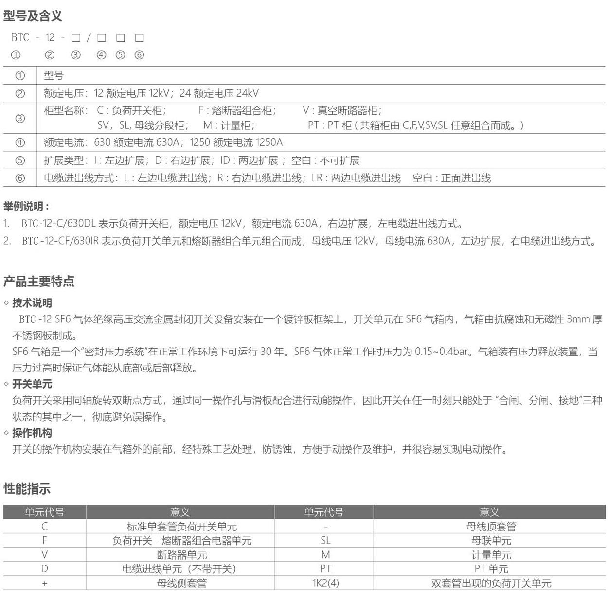 BTC-12全絕緣充氣式環網開關設備分為非擴展標準配置和可擴展標準配置。由于具有全模塊和半模塊的組合性以及自可擴展性,因而具有極特殊的靈活性。BTC-12全絕緣充氣式環網開關設備執行 GB 標準。在室內條件下 (20℃ ) 運行的設計壽命超過 30 年。