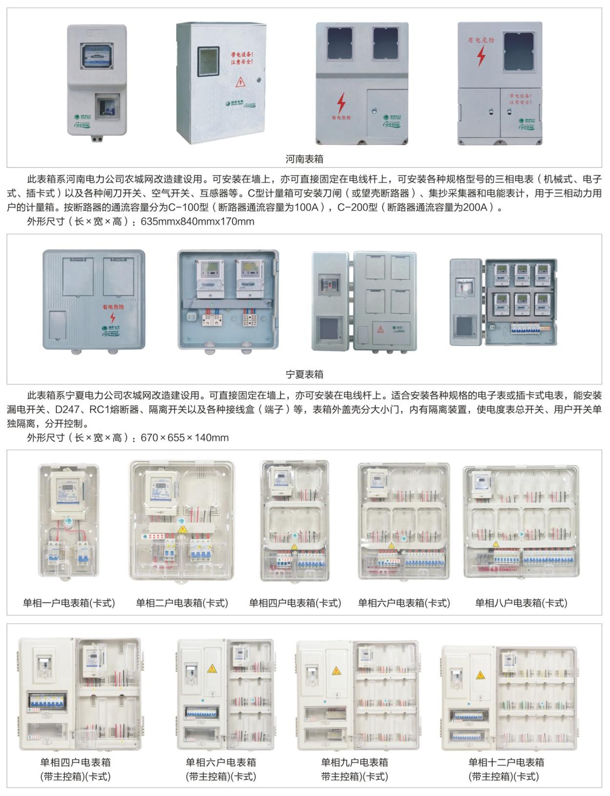 塑料電表箱采用集成化設(shè)計(jì)理念,由一、二、四、六、八、十、十二、十四、十六表位箱及主控制箱組成。可單箱安裝使用,也可由總控制箱進(jìn)線(xiàn)多箱拼裝使用。總開(kāi)關(guān)控制多箱安裝,將整個(gè)計(jì)量回路集裝于一體化封閉箱內(nèi),用戶(hù)分離控制,易于安裝管理,而且能夠阻止竊電者觸及計(jì)量裝量,防止竊電行為。